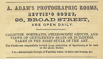 From about 1869 Stuart is known to have worked for Aberdeen-based Andrew Adams. Adams owned the 'A. Adams Photographic Rooms' at Rettie's court, 26 Broad Street. Adams business was founded in 1853, making him a very early professional photographer. His work encompassed cartes de visite, cabinet cards, sterograms, landscape and portrait photography, as well as cabinet and camera making. Stuart is listed as living at the same address with the occupation of 'photographer'. Adams himself lived elsewhere. It's possible that Stuart served some kind of apprenticeship prior to 1869. We don't know exactly what role Stuart performed but it is clear that he developed enough of an enthusiasm for photography to set persue it for the rest of his career. He clearly learnt enough to establish himself in business shortly afterwards.