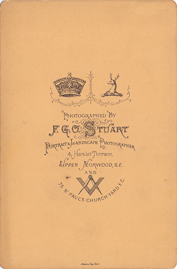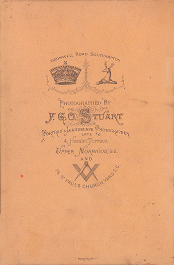 In November 1880 Stuart was elected as a fellow of the Royal Photographic Society and exhibited in their 1880 and 1883 annual exhibitions. It seems that, following his move to Southampton, Stuart lost interest in the society as he does not reappear in their archives.